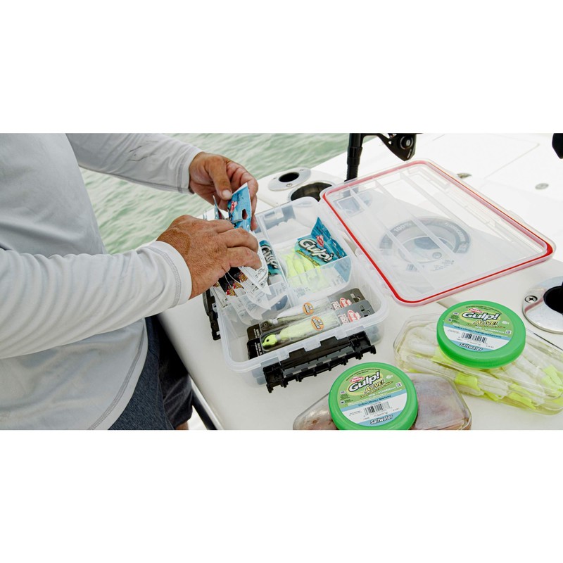 - Lädt Köder wieder auf, indem man gebrauchte Köder wieder in den leistungsstarken Gulp Alive Lockstoff legt.
