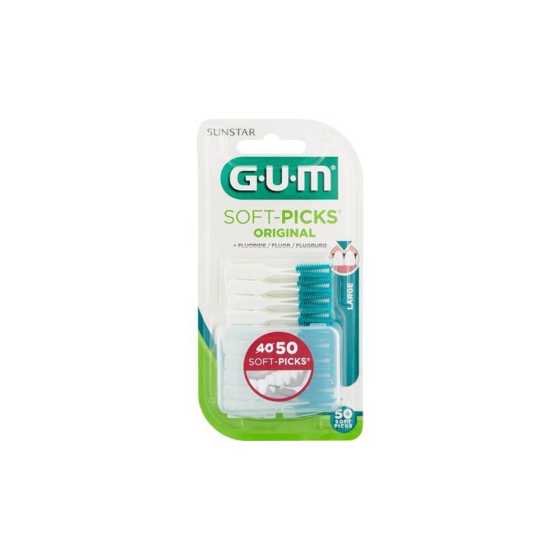 GUM Soft-Picks Original 50 Units are rubber and fluoride interdental sticks that easily and effectively remove plaque and food residue.