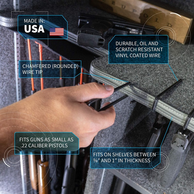 - MADE IN THE USA: At Gun Storage Solutions, we believe in supporting our own country’s economy. That’s why our products are all manufactured here in the USA. In fact, all of our Handgun Hangers and Rifle Rods are manufactured and packaged in our native state of Illinois. Thank you for choosing American-made supplies and helping to support our local economy.
