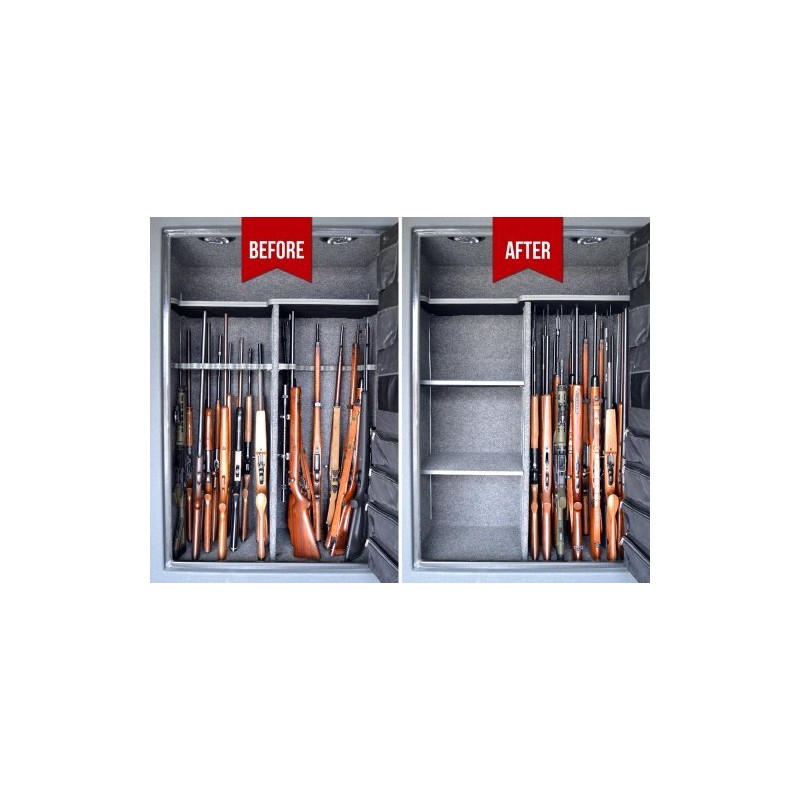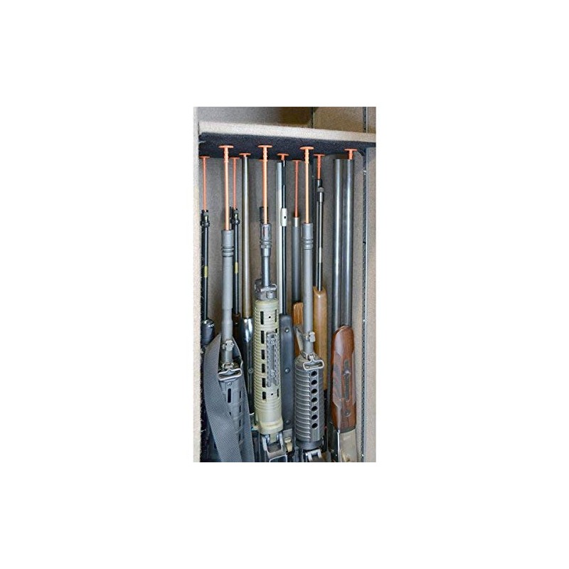 - MAXIMIZE SPACE: Leaning guns in standard gun racks waste space when you think your gun safe is full. Condense and organize your long guns and enjoy easier access with our Rifle Rods, a patented hook and loop system that individually stabilizes each long gun in an upright position. This easy-install rod and shelf liner system allows up to 4 rows of stacked guns, freeing storage space up to 50%.