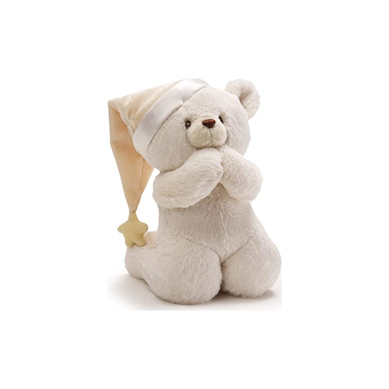 - MUSICAL PRAYER TEDDY: This 8” teddy bear features a cute, vintage sleeping cap and recites 'Now I Lay Me Down To Sleep' in a soothing child’s voice. Helps children learn their nighttime prayers.