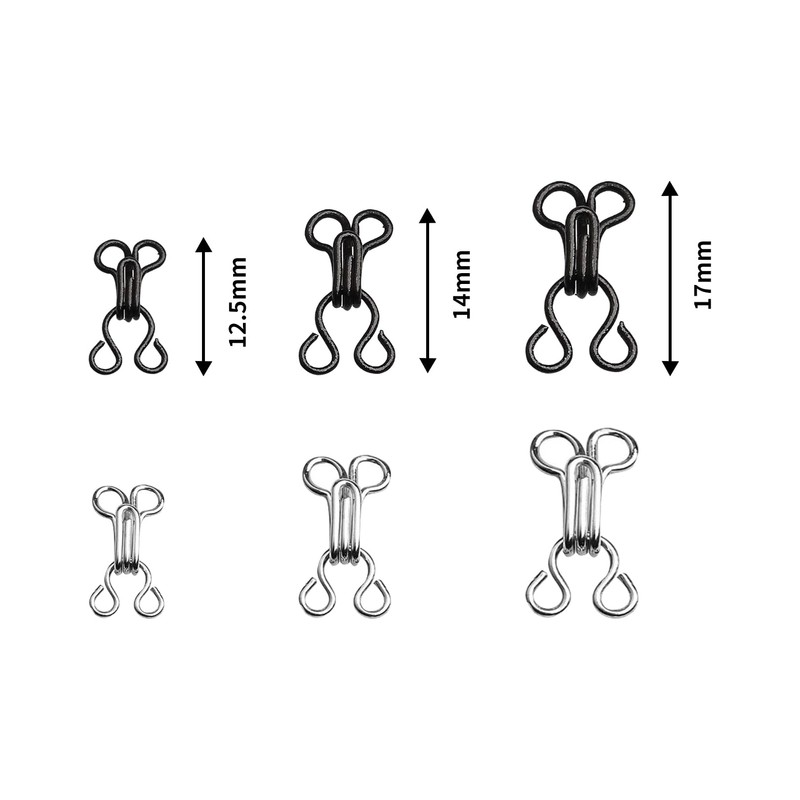 Black sewing hooks and eyes provide the finished look. Suitable for repairing broken bras, dresses, skirts, trousers, etc. A simple and safe way to tie clothes together.