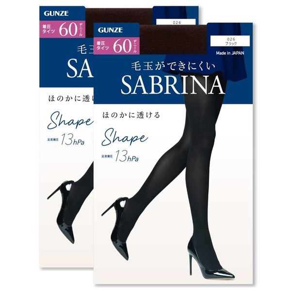 Gunze SBW56 Tights, Sabrina Shape, Warm Tightening Legs, 60 Denier (2 Pairs), Black, Black