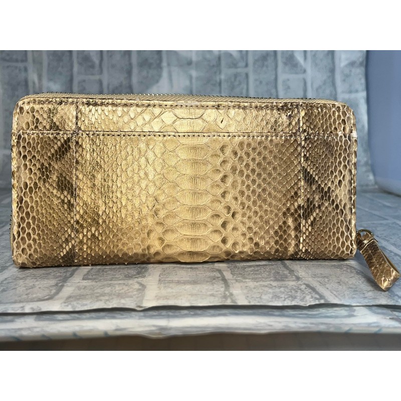 This long wallet is made of genuine Python leather with a round zipper and comes with a card case.