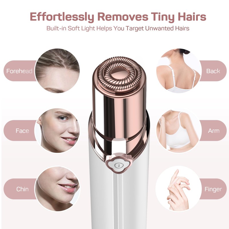 - Painess and dermatologists recommended: the facial hair removal for women adapts to the contours of your body and glides gently over the skin to trim the hair without pulling. Facial hair remover features 18k gold plating rounded low-friction protective heads for a smooth complexion without stubble, nicks or redness. The women's facial epilator trims unwanted hair on cheeks, chin, upper lip and arms in no time at all.