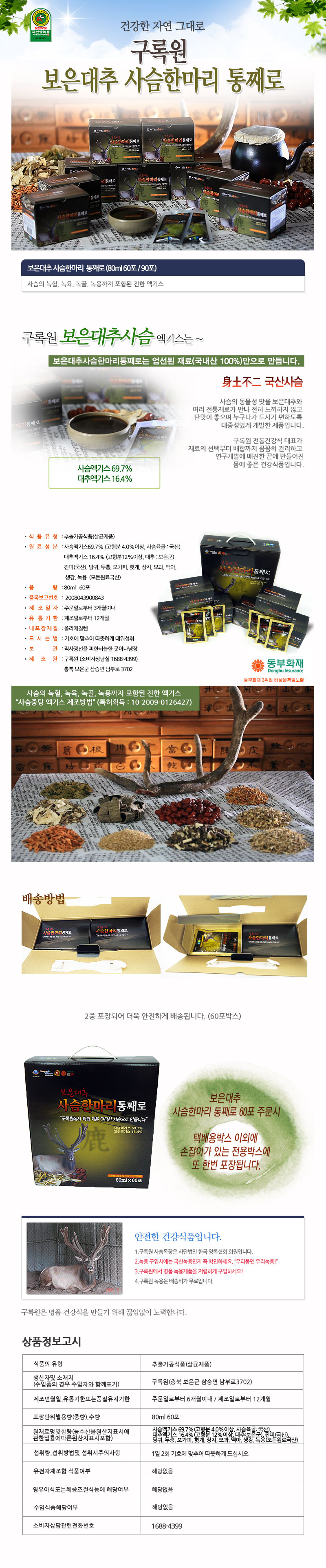 Gurokwon [Onsale] Boeun Jujube 60 packs of whole deer, deer double boiler patented/Boeun jujube added / 구록원 [온세일]보은대추 사슴한마리 통째로 60포 사슴중탕 특허/보은대추 첨가