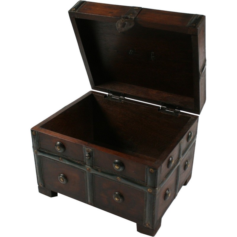 GURU SHOP Small Treasure Chest, Wooden Box, Jewellery Box - Model 2, Brown, Size: Large (18 x 24 x 18 cm), Tins, Boxes & Caskets