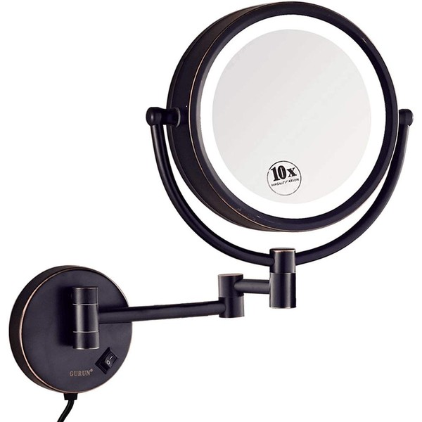 GURUN 8.5 Inch Magnifying Makeup Mirror with 3 Tones LED Lights,Double Sided Vanity Mirror with 10x Magnification,Plug Powered M1809DO (Oil-Rubbed Bronze/10X)