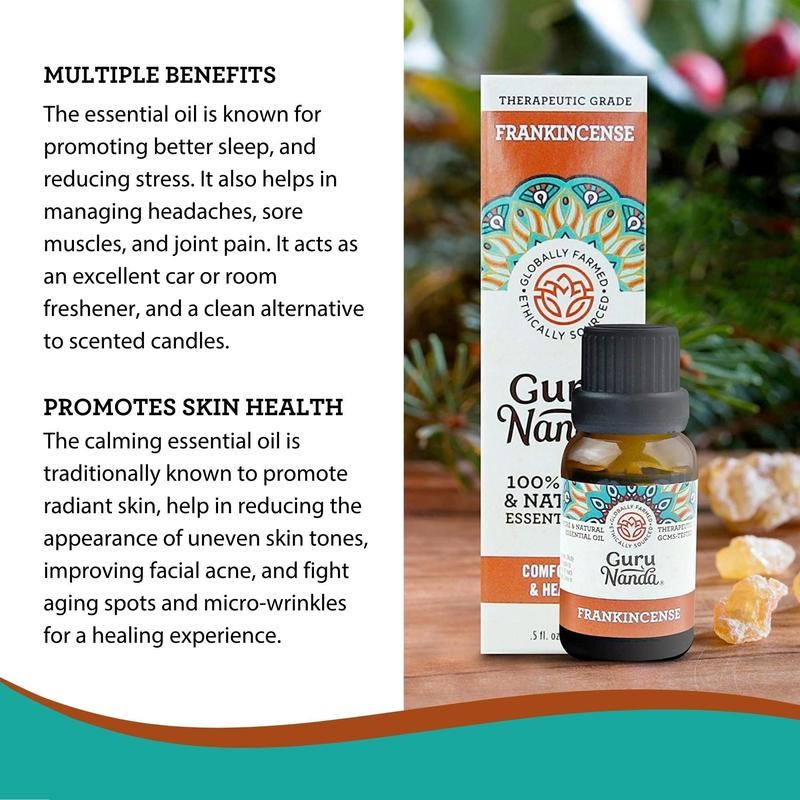 GuruNanda Frankincense Essential Oil (2-Pack) is a premium, pure essential oil known for its woody, camphorous aroma and versatile aromatherapy benefits. Packaged in amber bottles to preserve freshness, this oil is GCMS-certified, undiluted, cruelty-free, and high-quality, making it perfect for wellness, relaxation, and DIY projects.