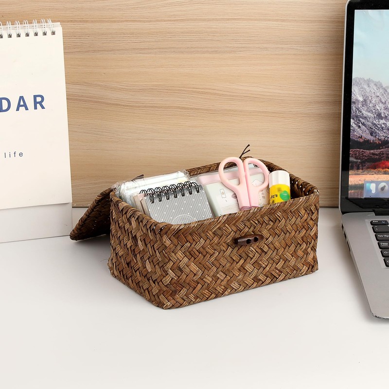 - Widely Applicable: Mini size, this seagrass basket fits on the desk. It can be utilized in various areas such as the bedroom, kitchen shelves, bathroom, living room, office, helping you keep your space neat and orderly