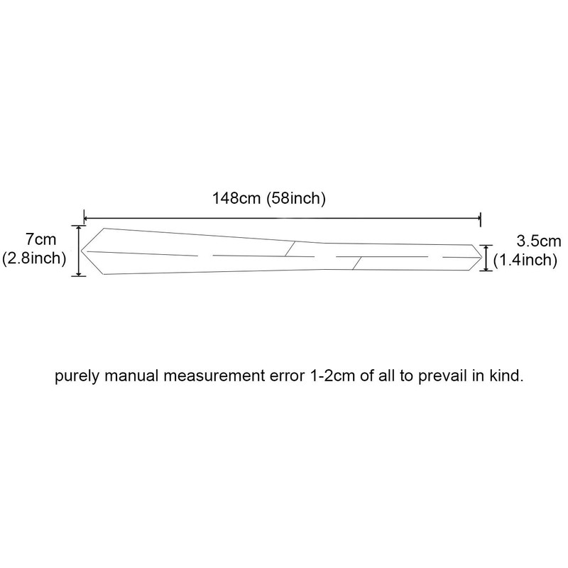 - Tie size: 58x2.8x1.4 inches (148cmx7cmx3.5cm) , Package Include: Tie.( Due to manual measurement, there may be 1-2 cm error of the physical. As different screens display colors differently, the color of the actual item may vary slightly from the above images.)