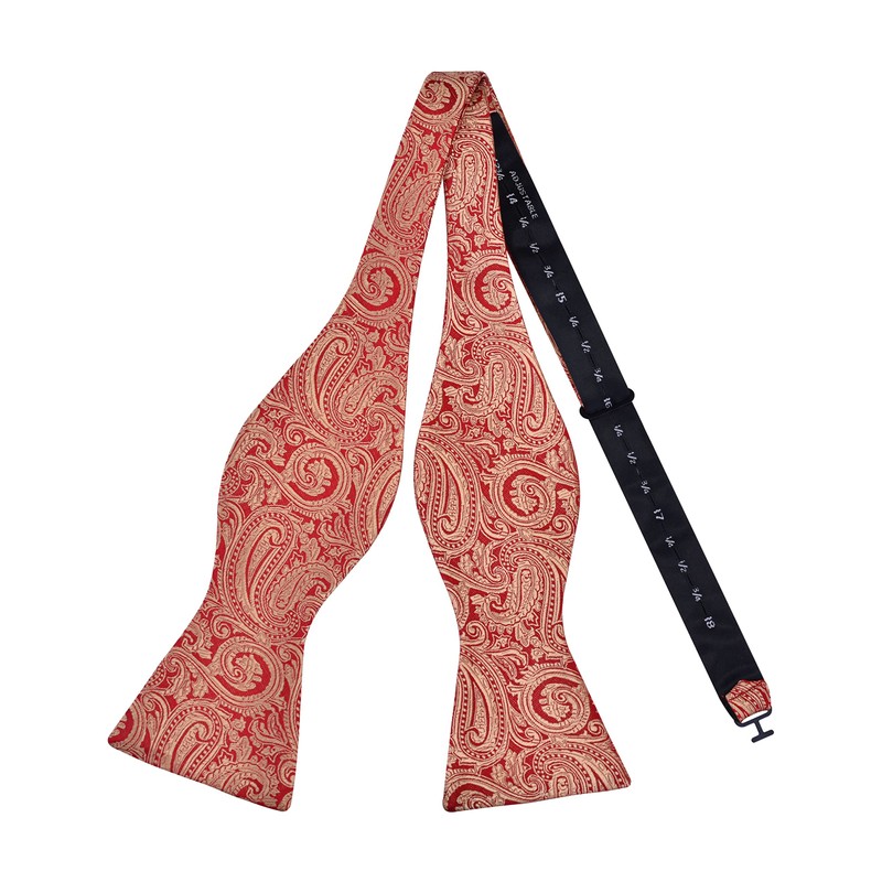 GUSLESON Mens Paisley Self Tie Bow Tie Silk Woven Gold Red Bow tie Pocket Square Set for Wedding (0652-10)