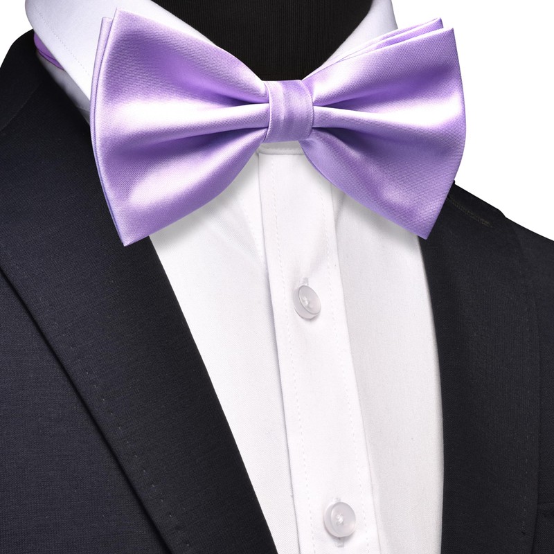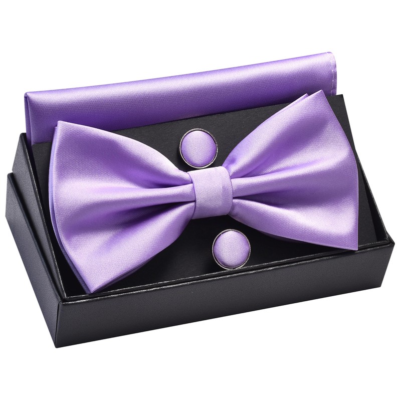 GUSLESON Mens Solid Color Double Fold Pre-tied Bow Tie and Pocket Square Cufflink Set with Gift Box, Lavender Lilac, general
