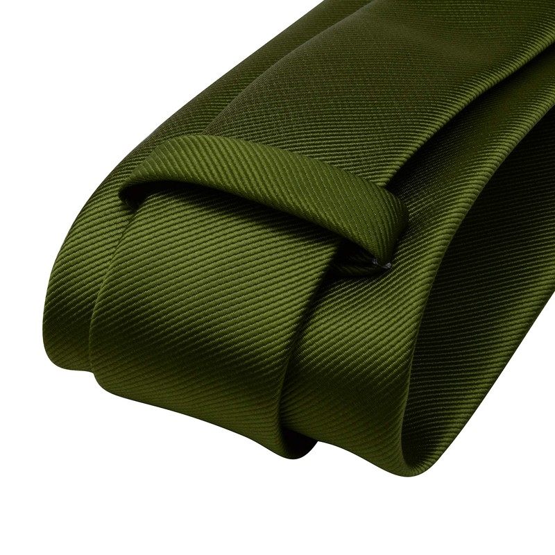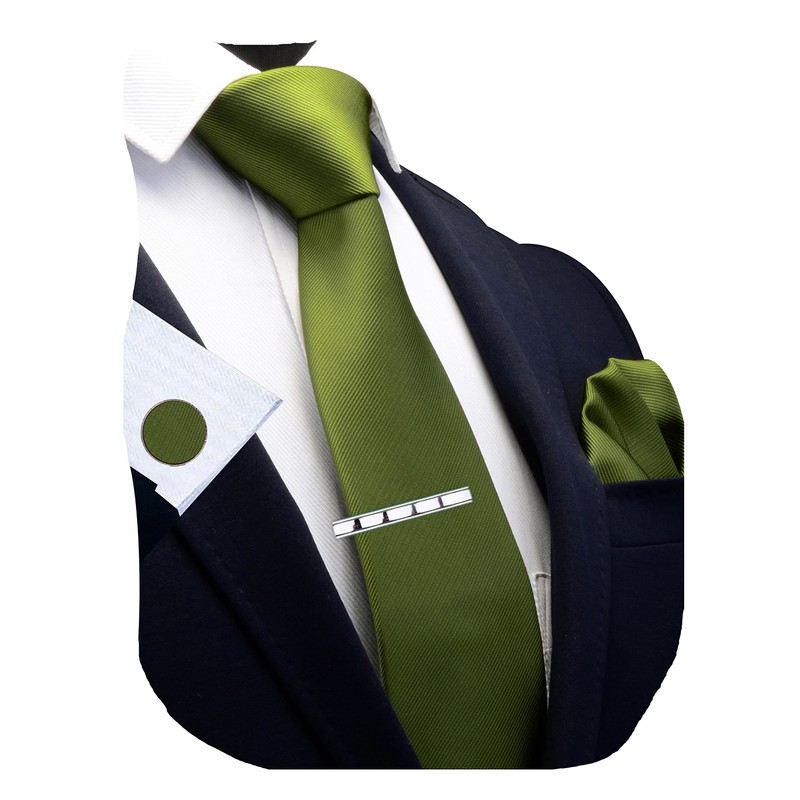 Gusleson Olive Green Ties for Men Solid Silk Necktie With Cufflinks and Pocke...