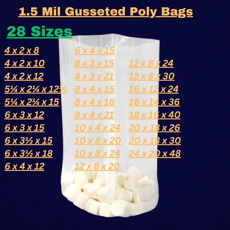 - ππ«π£ππ‘πππππ π¦ππππ¦: These 1.5 Mil (.0015") gusseted bags have expandable sides, which provide extra space for the contents of the bag to fit comfortably. When the gussets are opened, the bag can expand and accommodate larger or bulkier items. This is particularly useful in packaging applications where the bag needs to be able to hold various items of different shapes and sizes.
