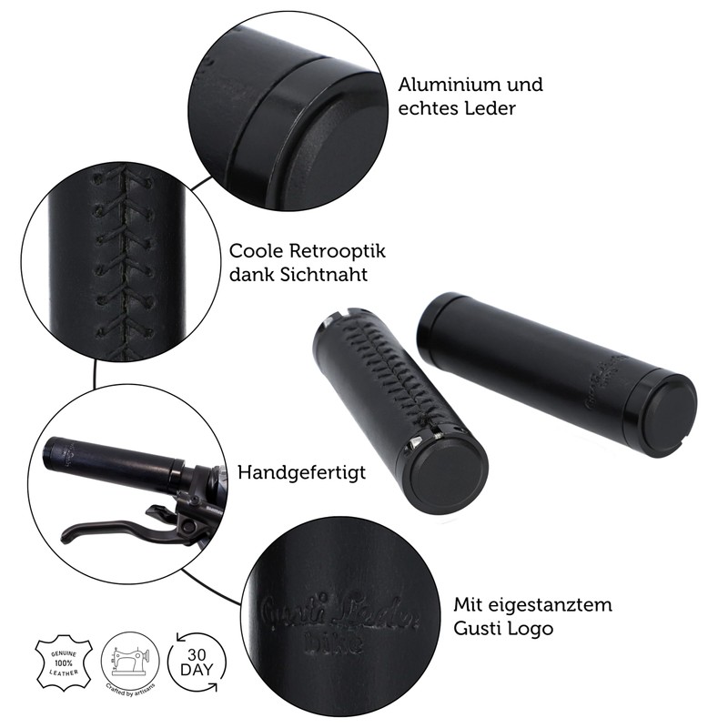 Gusti Gary F. Leather Handlebar Grip, Black