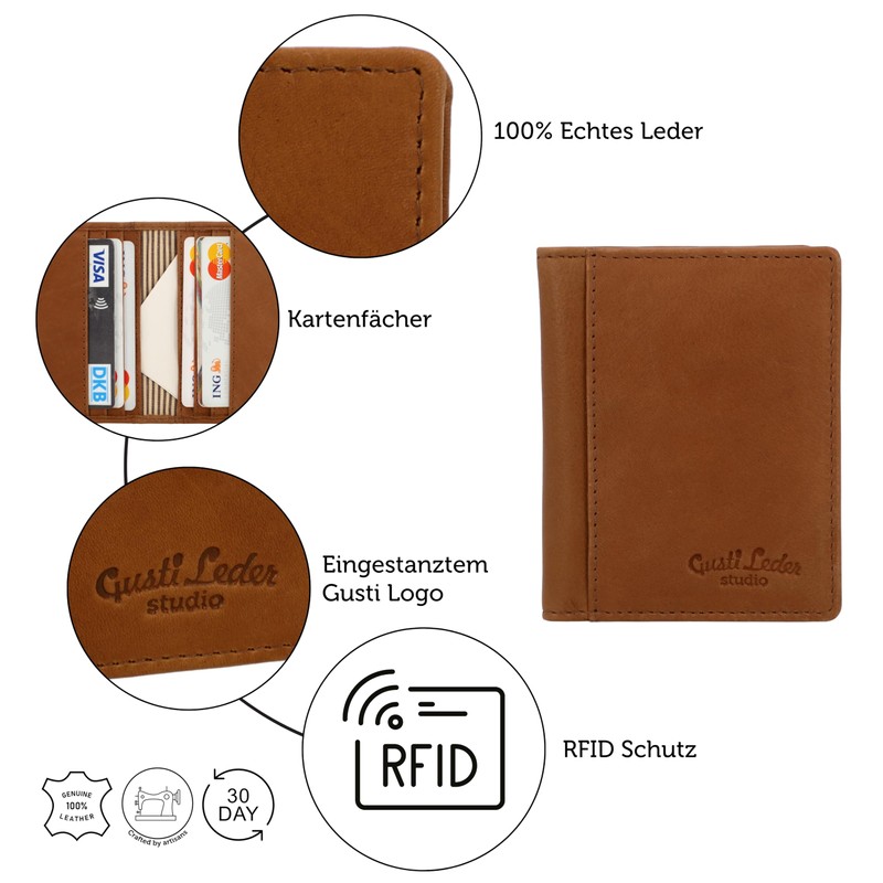 Gusti Leather Card Holder - Hal RFID Card Case RFID Protection Card Holder Wallet Brown Leather, hazelnut, rfid wallet