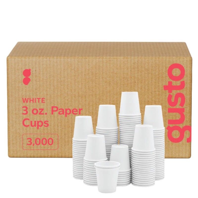 GUSTO [Case of 3000 3 oz. White Small Paper Cups, Disposable Mini Bathroom Mouthwash Cups - Eco-Friendly and Versatile (Formerly Comfy Package)