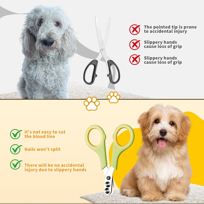 - Product features: claw cutters for dogs have ergonomic handles that provide stability and comfort, so you save time and effort when using it. And the cat nail scissors and claw grinders for dogs made of stainless steel are easy to clean and only need to be cleaned with soapy water to keep them hygienic.