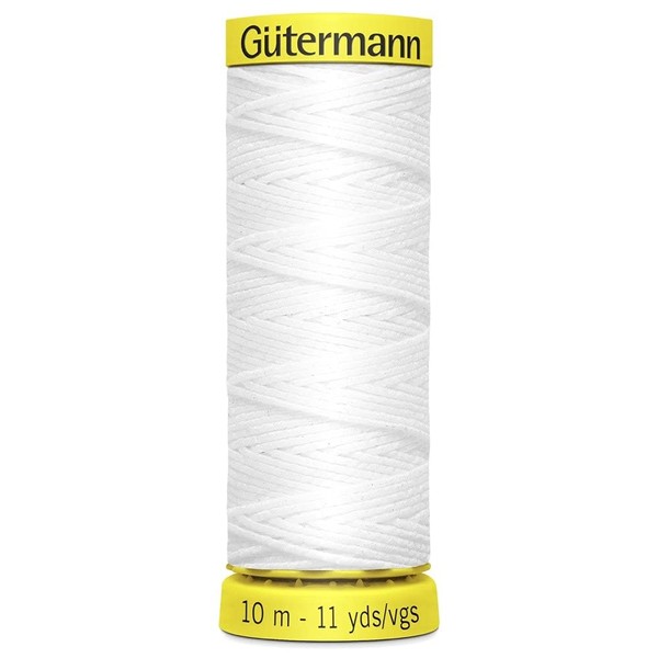 Gutermann Elastic Thread for Sewing, Bobbin Work, Smocking, Knitted Cuffs and Gathering Fabrics - White - WHT - 1 x 10m Spool