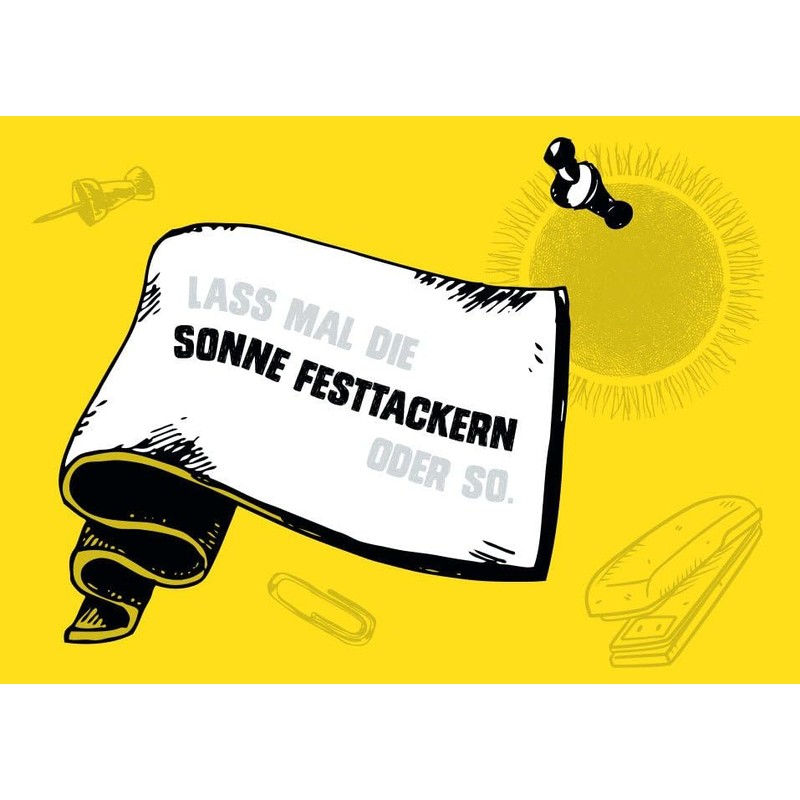 Gutsch Verlag Birthday Card with Saying - 'Sun Tacker' Illustration, Yellow & Black, Humorous Paper Clips & Stapler Design, Optimistic Decoration