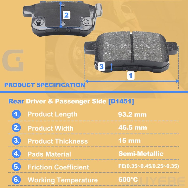 - GuuYebe Rear Brake Pads Kit includes: 4 PCS x Semi Metallic Rear Brake Pads