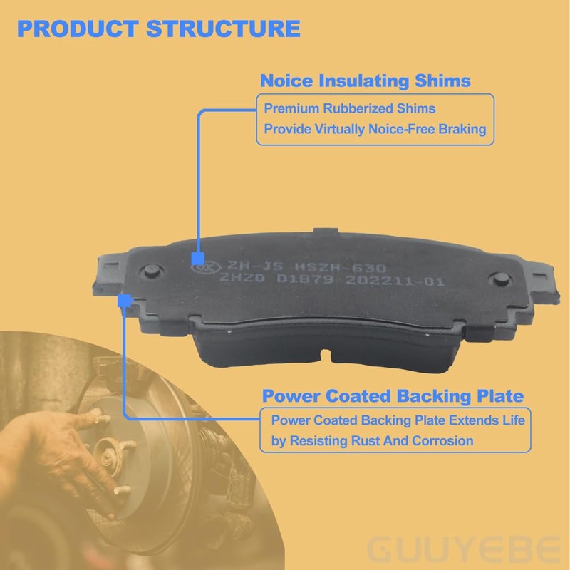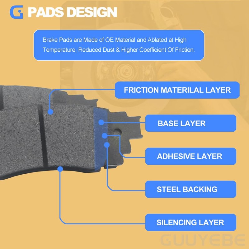 - GuuYebe Rear Brake Pads Kit includes: 4 PCS x Semi Metallic Rear Brake Pads