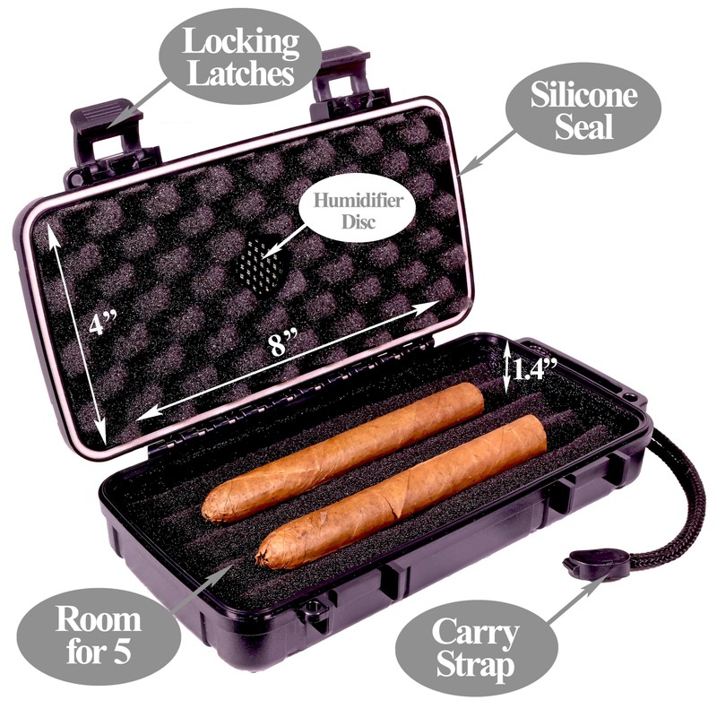 - Waterproof & Airtight: The portable humidor is made of ABS material, its waterproof and crushproof, with 2 strong locking latches and inner airtight seal. The high-density foam interior provides superior cushioning to keep your precious cigars safe. It is the perfect choice for all your outdoor activities, such as fishing, boating, golfing camping or whatever your outdoor activities.