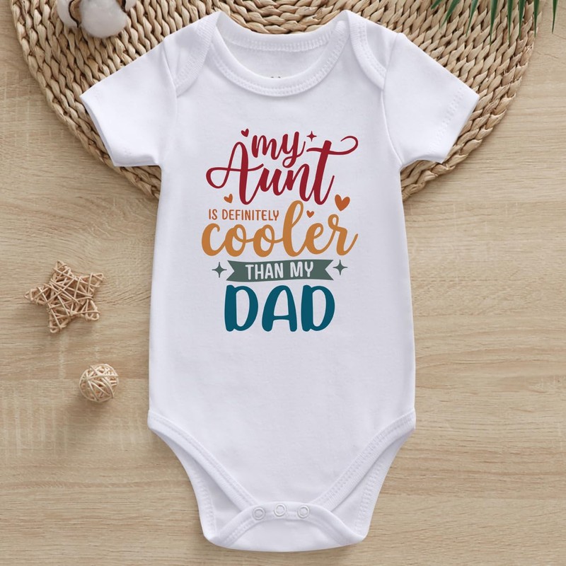 Guzcadun My Aunt Is Cooler Than My Dad Baby Clothes gender neutral aunties bestie baby clothes girl boy, Aunt Cooler Than Dad White, 3-6 Months