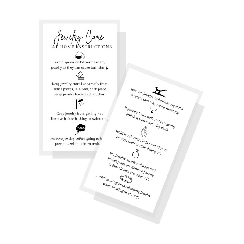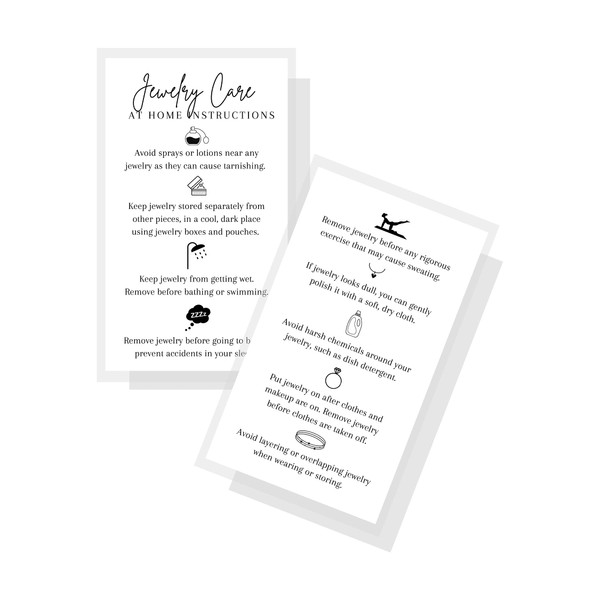 As an artist crafting jewelry-you need the best care instructions with as much detail as possible! Having them printed on this nice quality card stock makes it even more likely your customers will keep their care instructions, read them thoroughly, and apply the proper care instructiosn to your beautifully crafted jewelry.