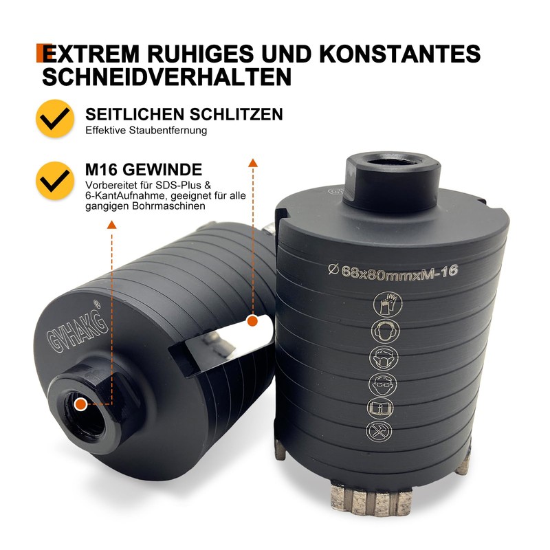 • Technical data: GVHAKG diamond drill bits 68 mm usable length 80 mm for fast and accurate drilling, long service life