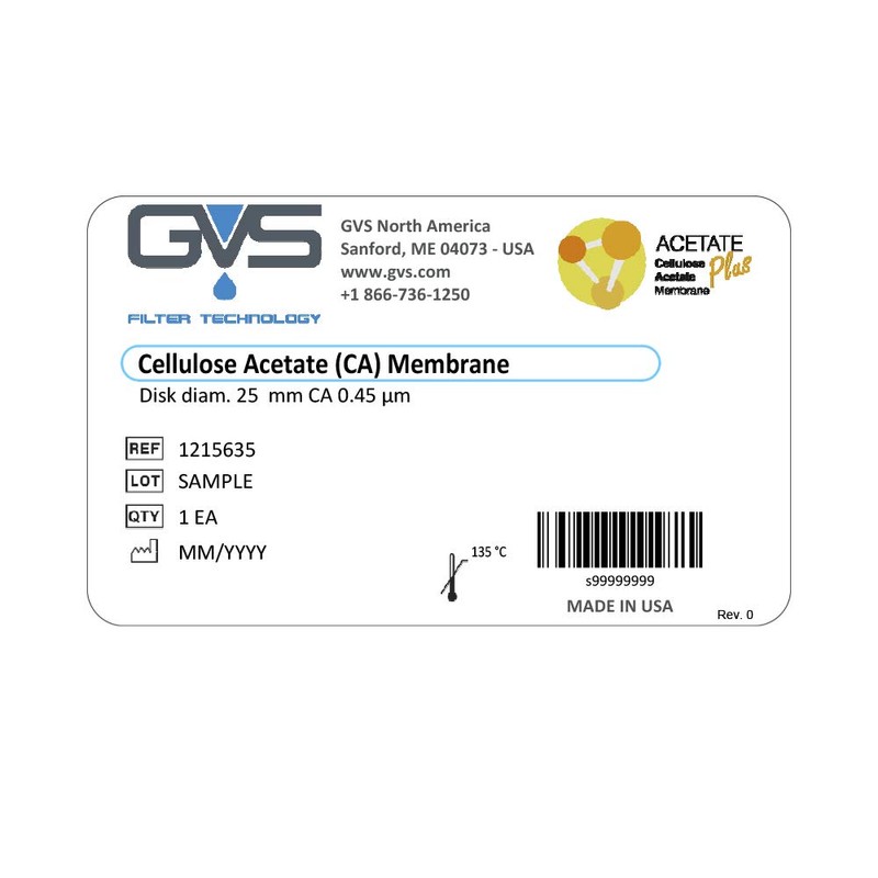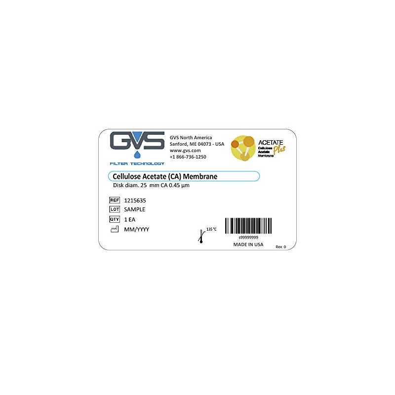 GVS Filter Technology 1215635 Filter Disc, CA Membrane, 0.45µm, 25mm diameter, 100/pk