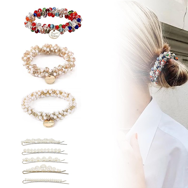 - 【High Quality Material】Women's hair scrunchies are made with a highly elastic rubber band made of artificial pearls. This hair rope is soft, thick, elastic and durable