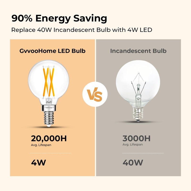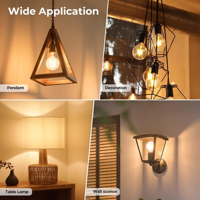 - Vintage Style, Energy Saving. Classic globe design with exposed LED filaments combines elegance with modern efficiency—save up to 90% energy compared to 40W incandescent bulbs.