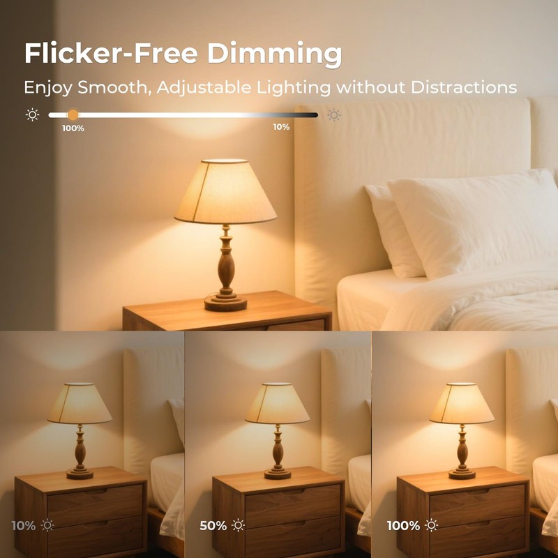 - Cozy 2700K Warm Light. Delivers a soft, inviting 2700K glow—ideal for bedrooms, living rooms, and dining areas. Flicker-free and gentle on the eyes, perfect for relaxing spaces