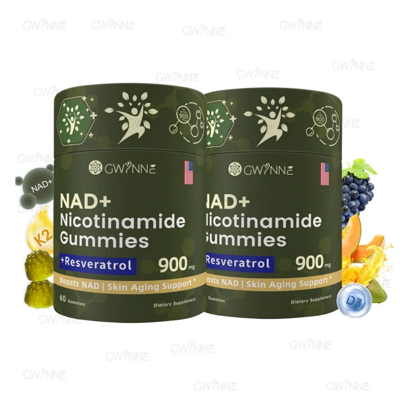 Gwynne Nad+ Nicotinamida Ribosida Liposomal Con Resveratrol Y Quercetina Suplementos Nad Alta Pureza 900mg Contiene Vitamina K2, D3 60 Gomitas 2pcs