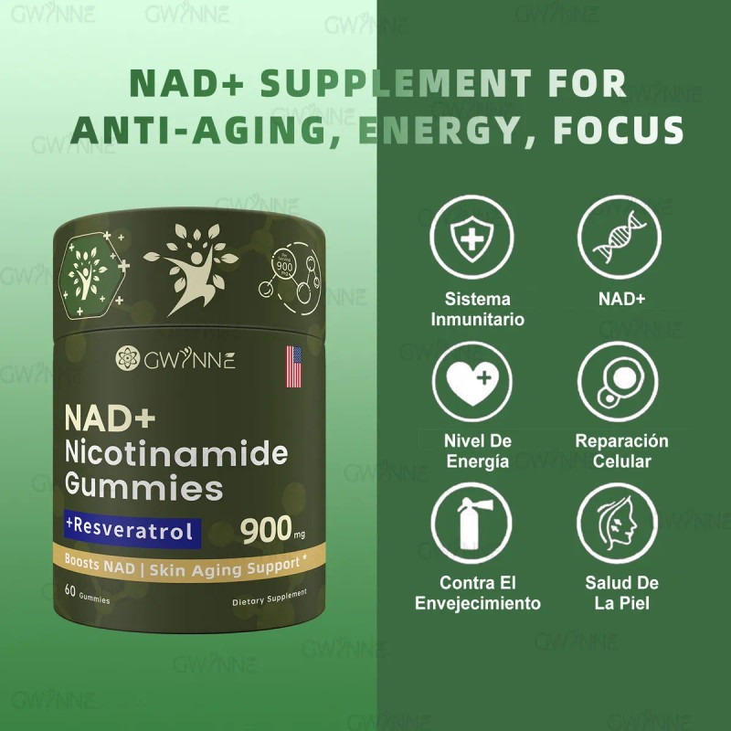 Gwynne Nicotinamida Ribosida Liposomal Con Resveratrol Y Quercetina Suplementos Nad Alta Pureza 900mg Contiene Vitamina K2, D3 Y Quercetina 60 Gominolas 2pcs
