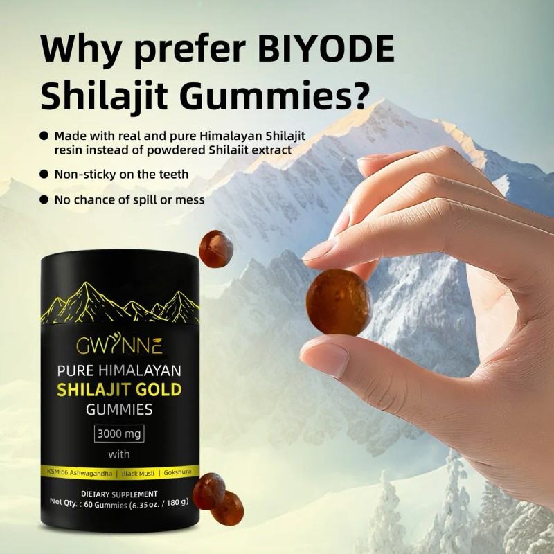 🌟 ⭐ GWYNNE Pure Himalayan Shilajit Gold Apto para Hombres y Mujeres Orgánico Pote con 60 Gomitas Sin sabor ⭐ 🌟