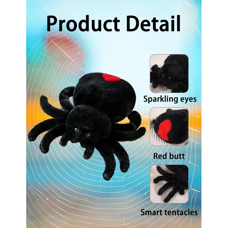 - Realistic design: this flannel spider has lifelike shapes with mysterious black and red tail - like the real item. Appreciated by players.