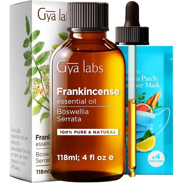Gya Labs Frankincense Essential Oil - Huge 4 Fl Oz - 100% Pure Natural Frankincense Oil for Skin, Face, Massages & Candle Making Scent - Premium Grade for Wellness & Comfort - Woody & Calming
