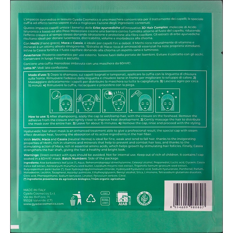 Gyada Cosmetics Hyalurvedic Fortifying Hair Sheet Mask, 60 ml