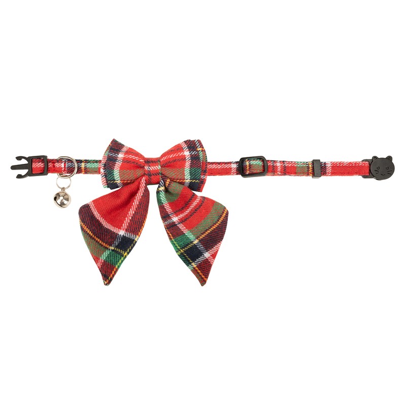 Classical plaid pattern Chrismas series cat collar, traditional red & green grid style, kinds of decorative bow available, bowtie, flower bow, salior bows for choose, provide different styles for your love pets.