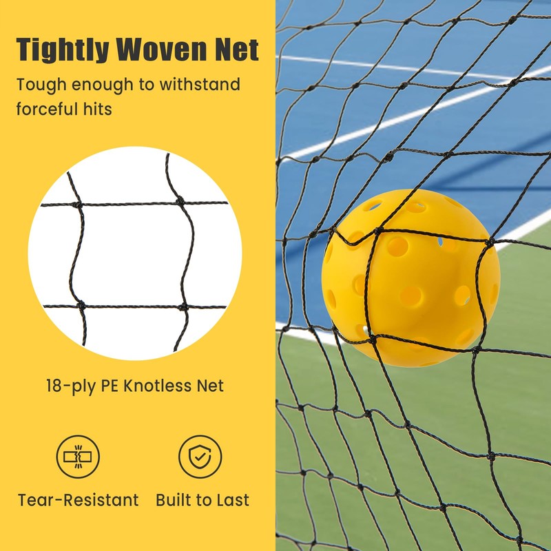- Tightly Woven Net: Engineered for intense games, our 18-ply PE knotless net is tightly woven and tough enough to withstand forceful hits without tearing. The advanced tear-resistant design ensures the net is built to last, offering you reliability game after game.