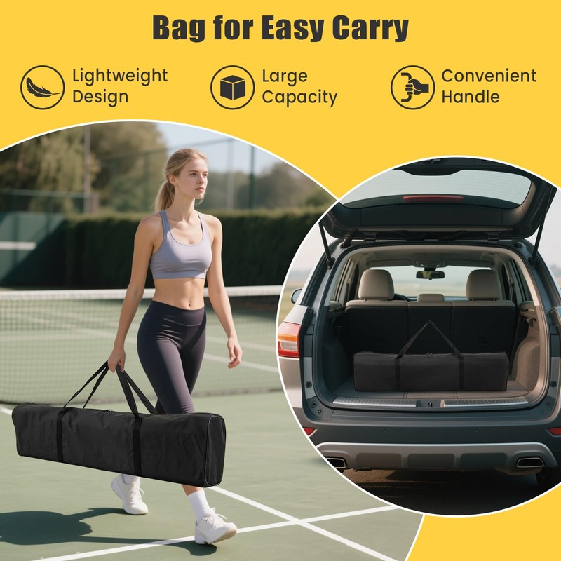 - Ideal for Pickleball Enthusiasts: A carry bag will come to you for easy storage and transport. Whether you're practicing in your driveway or competing in a tournament at a local park, our portable pickleball net is designed to fulfill the needs of pickleball enthusiasts of all levels. Its versatility and ease of use make it a perfect choice for spontaneous games or structured training sessions.