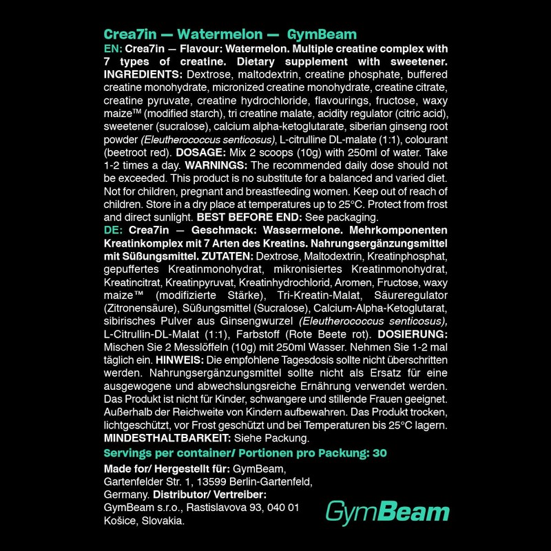 GymBeam GymBeam Crea7in - Mischung aus Kreatin, mikronisiertem Kreatinmonohydrat und gepuffertem Kreatinmonohydrat, Komplex zur Leistungssteigerung, mit Sibirischem Ginsengm (600 g, Watermelon)