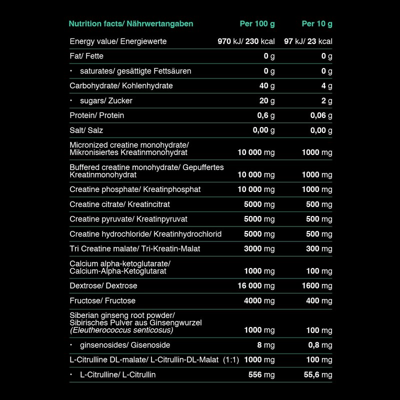 - Sieben wirksame Arten von Kreatin: In diesem Produkt findest du eine effektive Mischung aus Tri-Kreatin-Malat, Kreatin, Kreatinphosphat, Kreatin-Citrat, Kreatinpyruvat, Kreatinhydrochlorid und mikronisiertem Kreatinmonohydrat, die dir dabei hilft, deine Trainingsziele zu erreichen.