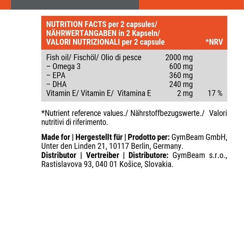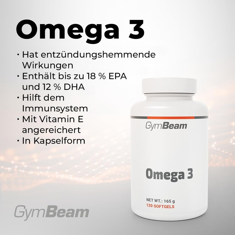 GymBeam GymBeam Omega 3 Kapseln - 2000 mg pro Tagesdosis, Hochdosiert mit 18% EPA und 12% DHA, Omega-3-Fisch?l-Tabletten angereichert mit Vitamin E, untersttzen Immunsystem (120 caps)