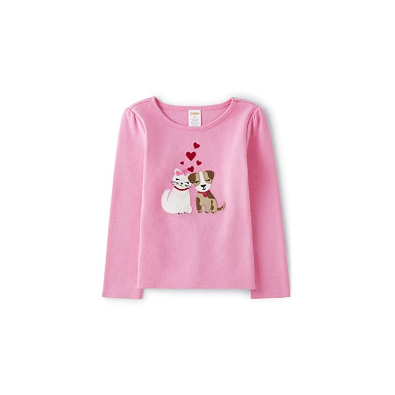 Gymboree,and Toddler Embroidered Graphic Long Sleeve T-Shirts,Vday Cat and Dog,12-18 Months