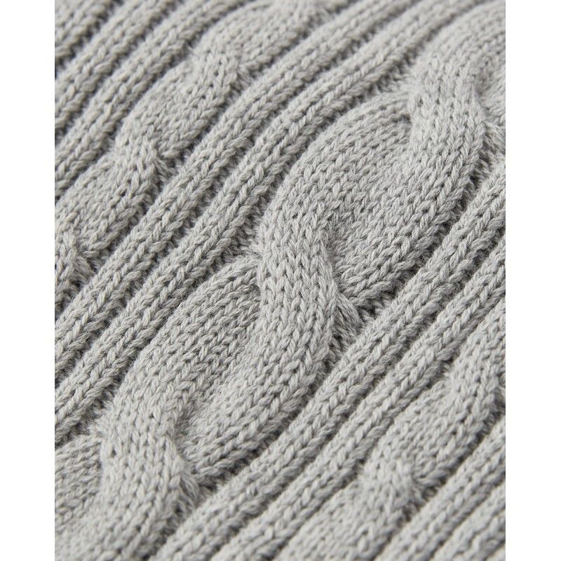 - This cable knit sweater is made from soft cotton and features a shawl neck detail