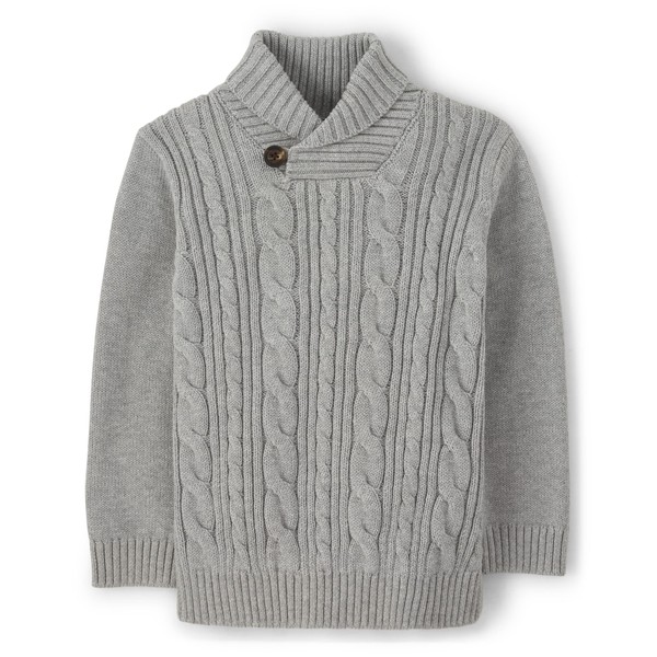 Gymboree Boys and Toddler Long Sleeve Cable Knit Shawl Sweater, Grey, 8